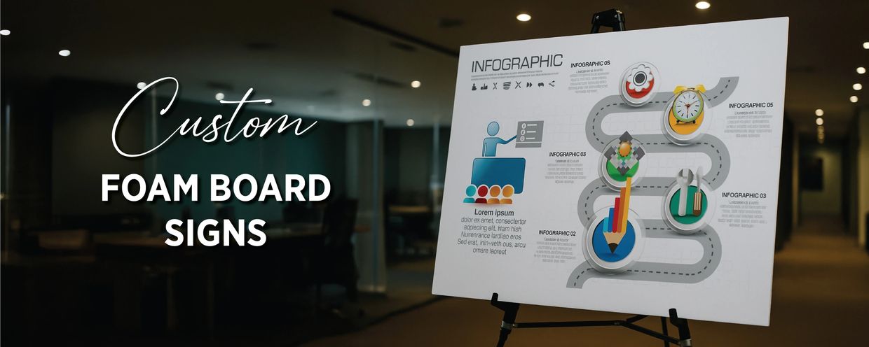 Foam board signs are lightweight, Portable and easy to display. Prop it on an easel, or use velcro tabs to display your custom sign in a variety of ways. foam board signs are digitally printed with vibrant UV ink